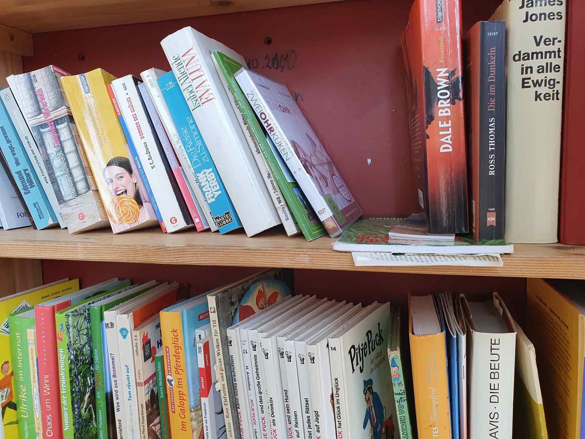 Neben vielen bekannten Klassikern findest du hier Gegenwartsliteratur der vergangenen 20 bis 30 Jahre. Möglicherweise stammen diese Bücher von den Bewohnern oder Besuchern des nahegelegenen Senioren- und Pflegeheims.